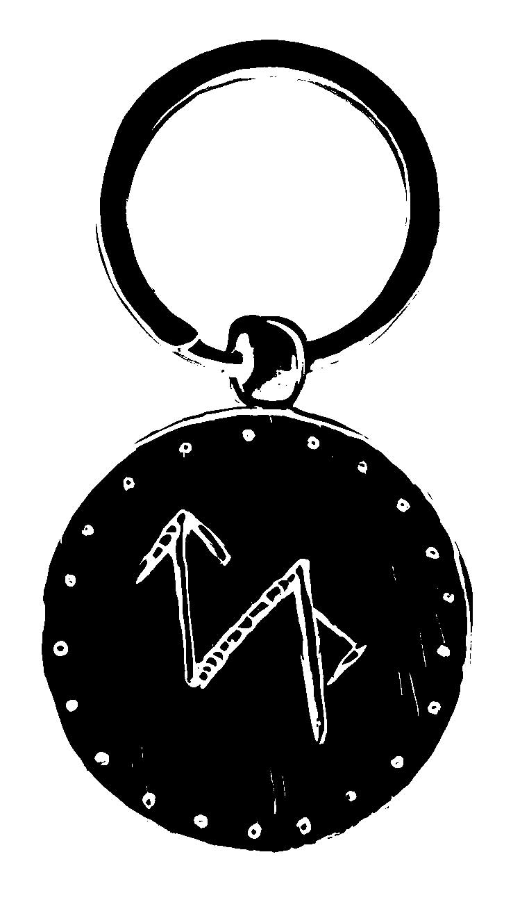 Bindrune Gebu Auja per la buona fortuna, costituita dalla Runa Gebo legata alla Runa Ansuz.